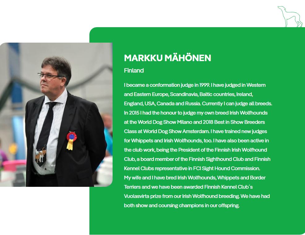 The judge will be Markkü Mahonen from Finland and the other judges for the Regional show as well as the 2 sweepstakes on the panel are still to be confirmed.